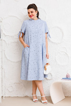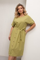 Платье женское нарядно-повседневное полуприлегающего силэта до талии. Выполненео из трикотажного полотна в сочетании с шифоном. Вырез горловины круглый на обтачке. По спинке застежка капелька на навесную петлю и пуговицу. Рукав втачной 7/8 по верху со встречной складкой. Платье отрезное по талии, верх из трикотажного полотна , низ платья юбка со сборкой. декором платья служит съемный пояс в цвет юбки.