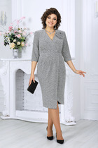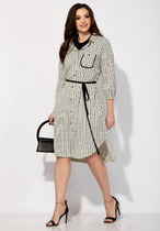 Платье женское нарядно-повседневное А-образного силуэта, выполненео из креп-шифона. Платье на трикотажной подкладке. Вырез горловины круглый на обтаке, по спинке астежка на навесную петлю и пуговицу. Рукав втачной по низу собран на резинку. В бокох швах обработаны разрезы, низ платья фигурый.Декором платья служит принт самой ткани. Пояс в комплекте.