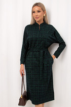 Полуприлегающий силуэт, втачной покрой, центральная застежка на потайную планку с петлями и пуговицы. Воротник-стойка. Рукав на притачной манжете с застежкой, лиф отрезной, юбка коническая. Полочка лифа платья с вертикальным рельефом со складкой, рукав с разрезом и мягкой складкой по линии притачивания манжеты, по лини талии настрочная кулиса с регулирующей тесьмой.