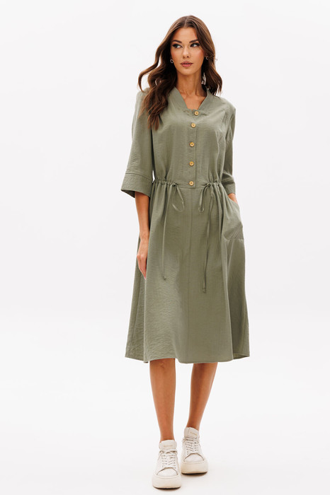 Изысканность и элегантность такого платья дарит своей обладательнице эффектный образ. Полуприлегающий силуэт, втачной покрой, отрезной лиф и коническая юбка. Полочка лифа с центральной застежкой на петли и пуговицы, втачным воротником, имитирующем стойку с фигурной линией втачивания, и мягкой складкой-вытачкой.