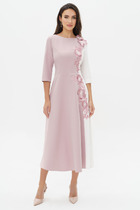 Лёгкое женское платье свободного силуэта выполнено из шифона на подкладке из крепа. Рукава реглан с манжетами; по горловине и низу волана небольшая сборка; по спинке застёжка в виде "капельки" на петлю и пуговицу. Платье полностью соответствует заявленному размеру. Пожалуйста, пользуйтесть таблицей обмеров готового изделия.