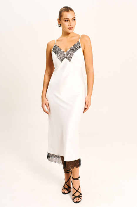 Платье - миди прилегающего силуэта выполнено из струящегося шелк - сатина на регулируемых бретелях и молнией в боковом шве. Подрезы по линии груди и низу платья дополнены мягким французким кружевом, которое держит форму. Платье полностью соответствует заявленному размеру. Пожалуйста, пользуйтесь таблицей замеров готового изделия, чтобы подобрать идеальный размер.