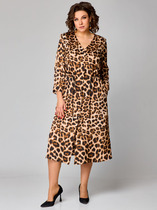 Платье женское, прямого силуэта, трикотажное.Состоит из трёх цветов ткани. Рукава прямые, трехцветные. Платье длиной ниже линии колена.