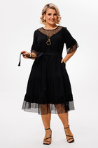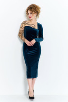 Платье женское трикотажное, полуприлегающего силуэта.По переду рельефе обработан разрез. Спинка с рельефами идущими от плеча и выточками по линии талии. Горловина лодочка. Рукав 3/4 со спущенной линией плеча.