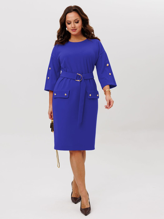 Нарядное платье из трикотажного крепа с мелким блеском станет прекрасным выбором для вечерних мероприятий,корпоративных встреч и праздничных торжеств.Особенностью этого стильного платья является его прямая модель ,которая подчеркивает женстсвенность и элегантность.Платье подходит для полных женщин. Платье прямого силуэта с нагрудными вытачками.Рукав спущенный с декоративной шлицей и пуговицами. Декором платья являются клапаны и пуговицы.Пояс эффектно подчеркивает талию.