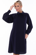 Платье свободного силуэта из трикотажной ткани с принтом. Рукав втачной одношовный со складками по низу и манжетой. В боковых швах карманы. Горловина обработана планкой в форме лодочки. По переду и по левому рукаву поверх принта настрочена сетка. Сетка может быть заменена с сохранением художественного образа изделия. Длина платья - 93 см , длина рукава платья - 53 см.