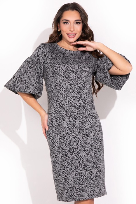 Оригинальная идея для тех, кто хочет создать женственный и романтический образ. Платье прямого силуэта из мягкого трикотажа с модным принтом. Рукав – пышный волан на подкладе.
