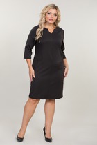 Платье без воротника , с V-образным вырезом горловины. Платье отрезное по линии талии. Полочки лифа переда располагаются на запах, с цельнокроенными завязками. Лиф спинки с талиевыми вытачками. Нижняя часть переда не закреплена к лифу, с центральной застежкой на петли и пуговицы. Шов по талии со стороны спинки присборен на резинку. Рукав втачной, короткий, с отрезной манжетой. Окат и шов притачивания манжеты присборен.