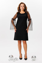 Платье с застежкой на потайную молнию в среднем шве спинки, с круглым вырезом горловины,со съемным воротником. По переду с рельефами, выходящими из проймы. Платье отрезное по линии талии. Нижняя часть переда и спинки расширенная к низу. По нижней части переда два рельефа, левый рельеф заканчивается разрезом. Нижняя часть спинки со средним швом, двумя рельефами. Рукав втачной, длинный, со съемными манжетами. Силуэт: полуприлегающий