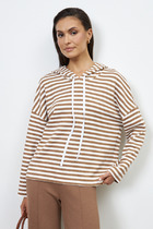 Платье без воротника, с V-образным вырезом горловины, центральной двубортной застежкой на петли и пуговицы по нижней части переда. Платье отрезное по линии талии. По лифу переда полочки с запахом, на уровне груди фиксируются пришивной кнопкой По шву притачивания к нижней части переда лиф переда и спинки присборен. Нижняя часть спинки с талиевыми вытачками. Рукав втачной, длинный, с отрезной манжетой, по шву притачивания манжеты присборен на резинку. Окат рукава присборен.