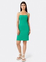Платье с центральной застежкой на петли и пуговицы, втачным воротником с отрезной стойкой. По переду с клапанами, расположенными на уровне груди. Спинка с отрезной кокеткой. По шву притачивания кокетки- встречная складка. По боковым швам- разрезы. Рукав втачной, длинный, с отрезной манжетой. По левому рукаву отделка- декор в виде розы. Платье двойное. Нижнее платье на бретелях, с нагрудными вытачками по переду.