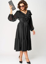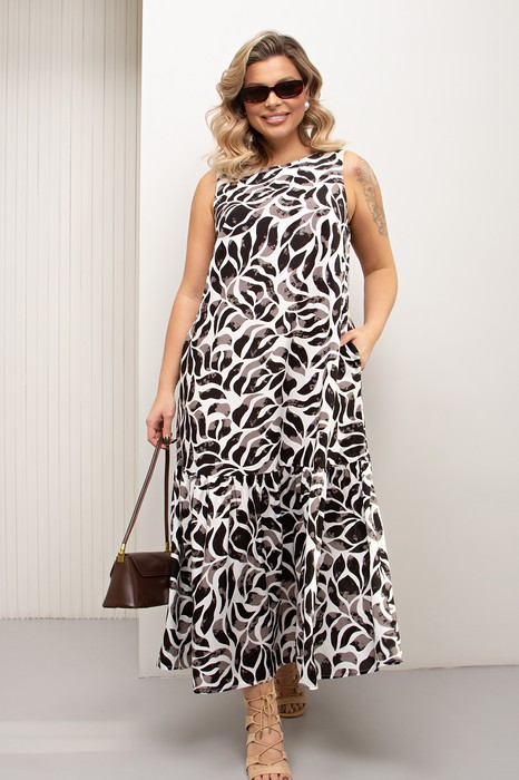 Летнее платье А - силуэта. Округлая горловина на внутренней обтачке. По спинке застежка на потайную молнию. В боковых швах функциональные карманы. Низ оформлен притачным воланом.