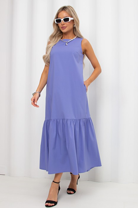 Летнее платье А - силуэта. Округлая горловина на внутренней обтачке. По спинке застежка на потайную молнию. В боковых швах функциональные карманы. Низ оформлен притачным воланом.