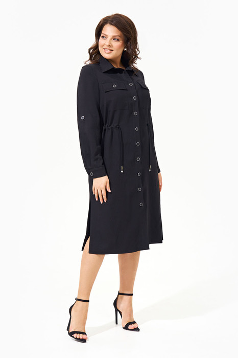 Платье-рубашка полуприлегающего силуэта выполнено из натуральной ткани (вискоза). Платье свободного силуэта со втачными рукавами, внутренней патой и манжетой, что позволяет регулировать высоту рукава и представляет собой стильную деталь с изысканным акцентом; воротник рубашечный; по переду накладные карманы и функциональная кулиса по линии талии с декоративным шнуром-завязкой; застежка на петли и пуговицы. Платье соответсвует заявленному размеру.