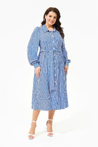Платье-рубашка классического кроя выполнена из натуральной легкой ткани (вискоза 100%). Платье свободного силуэта немного расширено к низу, рукава втачные с мягкими складками по верху и небольшой сборкой на манжете по низу рукавов, воротник рубашечный, застежка по переду на петли и пуговицы, в боковых швах карманы. В комлект входит сьемный пояс из основной ткани. Платье соответствует заявленному размеру. Пользуйтесь, пожалуйста, таблицей измерений готового изделия.