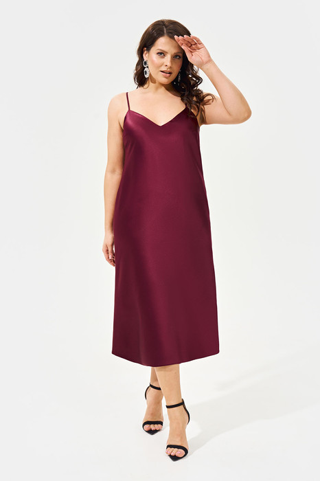 Женское шелковое платье-комбинация на регулируемых бретелях длины миди. Платье выполнено "по косой" из плотного, держащего форму шелк-сатина без подкладки. В бокой шов вшита потайная молния.
