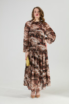 Женское нарядное платье полуприлегающего силуэта с цельнокроенными рукавами. Верх изделия выполнен из лёгкой струящейся ткани. Нижняя часть платья выполнена из  французкого кружева на подкладке из крепа. Платье полностью соответствует заявленному размеру. Пожалуйста, пользуйтесь таблицей обмеров готового изделия.