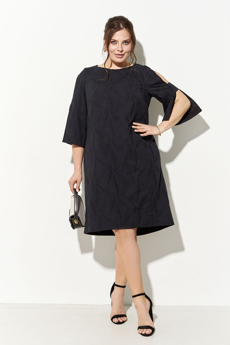 Платье свободного силуэта выполнено из ткани ришелье на хлопоковой отлетной подкладке, рукава втачные с разрезами до низа и вставкой по центру рукава, карманы в боковых швах. Спинка со средним швом, застежка на потайную молнию. Платье полностью соответсвует заявленному размеру.