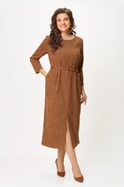 Женское платье прилегающего силуэта со втачными рукавами выполнено из трикотажного полотна средней плотности. Планка по переду дополнена дизайнерской вышивкой; по спинке - застежка-молния. Платье полностью соответсвует заявленному размеру. Пользуйтесь таблицей замеров готового изделия.