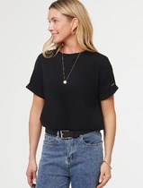 Джемпер с воротником-поло с коротким рукавом тонкой вязки из вискозы