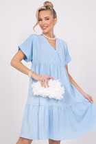 Платье женское полуприлегающего силуэта, отрезное по линии талии. Лиф платья кроя «летучая мышь». Перед лифа цельнокроеный. Спинка лифа цельнокроеная. Горловина лодочкообразной формы. В области плечевых швов застрочены защипы для формирования складок по переду. Низ рукавов обработан притачной манжетой из ткани-компаньона. Перед юбки с декоративными подрезами и имитацией прорезных карманов с листочкой из ткани-компаньона, обработан разрез. Заднее полотнище юбки цельнокроеное.