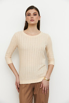 Платье полуприлегающего силуэта, длиной «в пол», на бретелях, с «V-образным» вырезом горловины спинки и переда. Деталь переда платья с нагрудными вытачками, горловина оформлена декоративным кружевом.