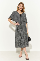 Платье полуприлегающего силуэта в стиле удлиненного жакета с двубортной застежкой.