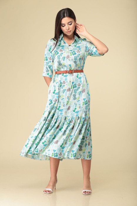 Стильное платье А-силуэта, без подкладки. По переду - нагрудные вытачки, цельнокроеные планки с функциональной застёжкой на петли – пуговицы, в боковых швах – функциональные карманы. Горловина обработана воротником рубашечного типа со стойкой с застёжкой на петлю – пуговицу. По низу платья притачной волан, высотой 40 см. Длина платья по среднему шву спинки для р.46-50 – 122 см, для р.52-56 – 123 см. Рукав – втачной, 1-шовный, с цельнокроеной манжетой. Длина рукава для р.46-50 - 35см, для р.52-56 - 38,5 см. Декор, пуговицы и ремень, могут отличаться от заявленного на фото. Цвет платья может отличаться на полутон от заявленного на фото.