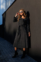 Стильное платье А-силуэта, без подкладки, из костюмно-плательной ткани. По переду – нагрудные вытачки, по центру- планка из отделочной ткани, шириной 4 см. По переду платья – накладные функциональные карманы с планками из отделочной ткани. По спинке – талевые вытачки, в среднем шве – потайная застёжка – молния. Горловина платья с притачной стойкой и воротником рубашечного типа из отделочной ткани. Длина платья по среднему шву спинке от стойки воротника до низа – 94,5 см. Рукав – втачной, 2-шовный, с притачной манжетой из отделочной ткани, высотой 4.5 см, длиной – 49 см. Низ платья обработан притачной планкой, высотой 3 см, из отделочной ткани. Это стильное платье станет неотъемлемой частью Вашего гардероба. Цвет платья может отличаться на полутон от заявленного на фото.
