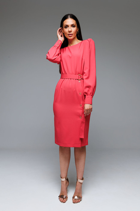 Платье дополняет съемный текстильный пояс на пряжке.