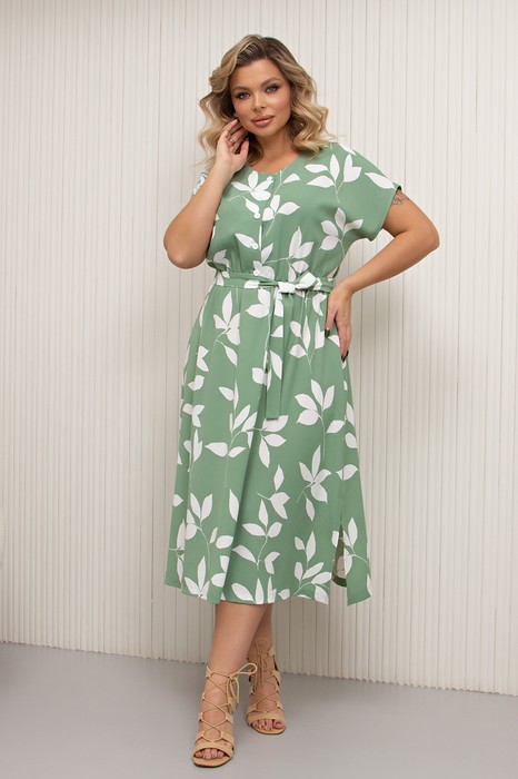 Комфортное платье приталенного силуэта. Округленная горловина на внутренней обтачке. По переду планка с застежкой на петли и пуговицы. Цельнокроеный короткий рукав. Модель отрезная по линии талии, присобрана на эластичную резинку. Низ ровный, по бокам разрезы. Тканевый пояс дополнительно подчеркнёт линию талии.