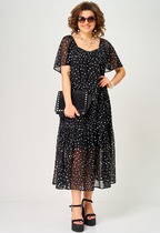 Женское платье длиной миди - выбор для девушек, которые хотят стильный и красивый образ на любое торжество. Это нарядное изделие подчеркнет индивидуальность и добавит легкое настроение весны и лета в ваш гардероб. Модель платья отрезное по талии с округлым вырезом горловины. По линии лифа и талии выточки перенесены в легкую сборку. Юбка в модели расклешена к низу. Рукав вточной, укороченный со сборкой по окату и низу рукава на эластичную резинку. Спинка с центральным швом и застежкой на навесную петлю с пуговкой. Юбка на подкладке.