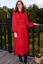 Платье полуприлегающего силуэта, выполнено из костюмной ткани. Рукав втачной длинный, выполнен из хлопка. По верхней и нижней части рукава сборка, по низу рукава манжета на застежку на петли и пуговицы. По горловине воротник рубашечного кроя. По левой стороне складка имитирующая запах. Выше линии груди пришиты металлические пуговицы. По спинке средний шов переходящий в застежку на потайную молнию.