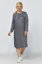Платье прямого силуэта из трикотажного полотна. Горловина-стойка. Рукав со спущенной линией плеча, с коротким рукавом. На спинке в центральном шве по низу разрез. По переду и спинке декоративные рельефы. В районе талии кулиса с фиксатором для регулирования степени прилегания. В комплект входит съемная брошь. Обращаем ваше внимание, что фурнитура может отличаться от фото.