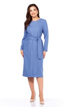 Легкое воздушное платье приталенного кроя с расширенной книзу юбкой. То талии платье отрезное, присборено на эластичную тесьму. Дополнено съемным поясом , выполненным из основной ткани. Рукав втачной, 3/4, по низу присборен на эластичную тесьму. Горловина с V-образным вырезом. Спереди платье дополнено разрезом. Длина платья от плечевого шва 127см. Длина рукава 47см.