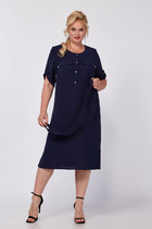 Повседневное платье в стиле бохо, выполнено из искусственного льна-вишера. Струящаяся по фактуре ткань, благодаря свободному прилеганию, создает кокон оберегающий от зноя и палящего солнца. Короткий рукав, который можно регулировать хлястиком на пуговице. Ассиметричная, функциональная застежка переходит в драпирующийся карман, с противоположной стороны карман спрятан в боковой шов. По бокам изделия разрезы. Изделие может сочетаться как с кедами, босоножками, так и туфлями. Универсальность и практичность платья сделают его любимым в Вашем гардеробе в наступающем летнем сезоне. Длина по спинке 128 см, длина рукава 26 см. Изделие подойдет на рост 170 см