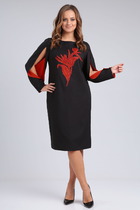 Нарядное, отрезное по линии талии платье с V-образным вырезом горловины и юбкой с воланами, расширяющимися к низу. Лиф платья выполнен из кружева, а юбка из легкой гофрированной ткани с люрексом, в качестве подкладки – атлас. Втачной рукав из кружева, длиной 3/4. По переду нагрудные вытачки, а по спинке талиевые. Потайная застежка-молния в боковом шве платья. Лиф платья скроен таким образом, что все линии визуально стройнят фигуру и делают талию тоньше. Платье дополнено брошью ручной работы.Это платье - отличный вариант для торжества!