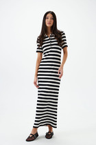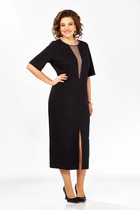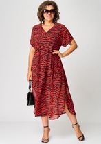 Платье свободного покроя с асимметричными горизонтальными подрезами и кокеткой. Кокетка декорирована печатью и нашивным элементом. Спинка с кокеткой. Рукав втачной одношовный короткий. Длина платья 115 см, длина рукава 22 см. Декоративная нашивка может отлечаться от фото.