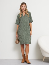 Платье женское полуприлегающего силуэта отрезное по линии талии. Лиф переда с нагрудными вытачками. Горловина V-образная. По среднему шву спинки сверху застёжка потайная молния. Юбка расклешённая. По линии талии эластичная тесьма резинка. Рукава одно шовные втачные. По окату рукава небольшие складки, низ со сборками. Украшает платье кружево. Изделие дополняет пояс кушак. Платье без подкладки.