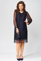 Платье женское отрезное выше линии талии, свободное.  Центральная часть спинки стянута на резинку «венгерку». Горловина фигурная, регулируется завязками. Окаты рукавов стянуты на тонкую резинку. Рукава одношовные втачные, на уровне локтевого сгиба рукав стянут резинкой «венгеркой». Платье без подкладки.
