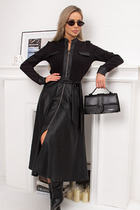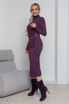 Платье женское полуприлегающего силуэта отрезное по линии талии. Лиф переда с нагрудными и талевыми вытачками. Горловина круглая. По среднему шву спинки сверху застёжка потайная молния. Юбка расклешённая. Рукав одношовный втачной. Низ рукава со складками. Изделие дополняет пояс кушак. Платье без подкладки.
