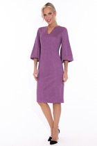 Платье женское полуприлегающего силуэта, отрезное по линии талии, на резинке, без рукавов, выполнено из тонкой плательной ткани. Юбка, слегка расклешённая к низу. По переду застёжка на воздушную петлю и пуговицу. Горловина круглая с небольших рюшей. Широкие воланы от плеча до талии. Платье дополняет пояс. Платье на тонкой трикотажной подкладке.
