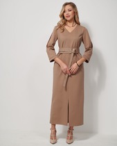 Платье женское приталенного силуэта, расширенное к низу. Платье отрезное по талии. Верхняя часть переда с нагрудными и талиевыми вытачками. По спинке - талиевые вытачки и средний шов. В среднем шве - потайная молния. Нижняя часть платья в складку. В боковых швах карманы. Рукав короткий, цельнокроенный, с манжетой и патой. Воротник пиджачного типа с имитацией застежки на 4 декоративные пуговицы. Это платье придется по душе всем, кто хочет выглядеть женственно и стильно.