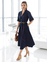 09.04 Vilatte Платье в стиле сафари с отложным воротником D22.253 синий