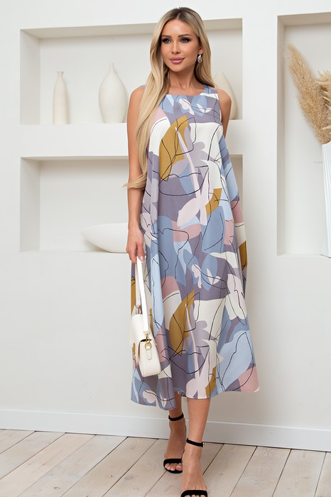 Легкое платье А - образного силуэта. Округлая горловина на внутренней обтачке. Легкое и воздушное платье подойдет для прогулок и встреч с друзьями.