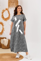 Эффектное двубортное платье длиной миди из облегчённого денима полуприлегающего силуэта. Линия плеча приспущена, рукав втачной три четверти с манжетой и патой. Горловина обработана обтачкой с V-образным вырезом. Линия талии акцентирована притачным поясом. Имеются карманы в боковых швах. Изделие застёгивается на кнопки. Без подкладки.