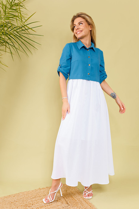 Совместные закупки Екатеринбург Женская одежда Платья — Платье NIKVA н365-5 аквамарин+молоко