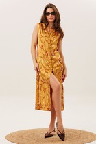 Комфортное платье трикотажное прямого силуэта свободного кроя с втачным рукавом со спущенной проймой в пол. По горловине переда планки с запахом. Воротник с цельнокроенной стойкой. В боковых швах расположены карманы. Изделие с разрезами по низу с обеих сторон