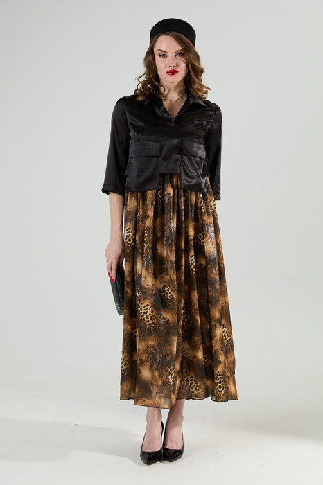 — Платье NIKVA н514-4 чёрный и кофейный леопард