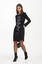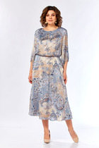 Платье комбинированное, состоящее из двух частей: верхней и нижней. Нижняя часть: платье А-силуэта свободного прямого кроя с втачным рукавом. По окату рукава сборка, по низу манжет. По спинке шов. Горловина полукруглая, застегивается на пуговицу по спинке.Верхняя часть - имитация удлиненного жилета прямого кроя. В комплект к платью идёт ремень из экокожи, может отличаться от заявленного на фото.